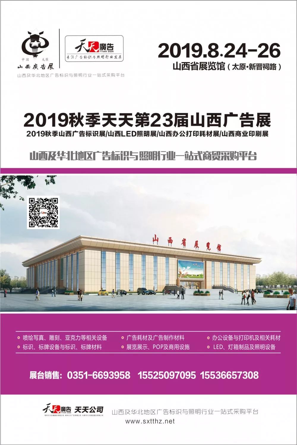 接下來,天天公司繼續(xù)秉持“創(chuàng)造品牌展覽 締造無限商機”的辦展理念,為展商和觀眾傾力打造高規(guī)格、大規(guī)模、高品質(zhì)的一站式商貿(mào)平臺。824-26,我司舉辦的秋季山西廣告展,我們期待與您在太原山西省展覽館(老館)再次相聚!
